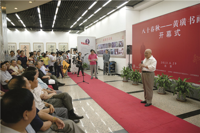 6月29日,由中国美术院主办,北京视界聚焦文化传媒有限公司承办,国务院老干部活动中心、江苏同曦集团、中国水利水电出版社、安徽江夏文化研究会作为支持单位的“八十春秋”——黄璜书画展,在位于北京市东城区的中国美术院隆重开幕。来自全国各地的离退休老干部、艺术家、商界代表、媒体朋友共计100多人出席了开幕式。中组部原部长张全景,水利部原部长钮茂生,宁夏回族自治区原主席马启智,江西省委原书记舒惠国,中央办公厅原副主任樊士晋,中联部原副部长李北海,林业部原副部长刘广运,司法部原副部长金鉴,国家民委原副主任李晋友,国家税务总局原副局长程法光,中国人民大学原党委书记马绍孟,农业部原纪委书记宋树友,国家新闻办原副主任杨正泉,中华全国新闻工作者协会原常务副主席徐心华,建设银行原行长周道炯,胡耀邦原秘书张耀光,国务院外事办原副主任程振声,西部时报社经营总监张整顿,中国西部发展促进会副理事长、西部时报社行政总监丁春明等领导出席了开幕式。