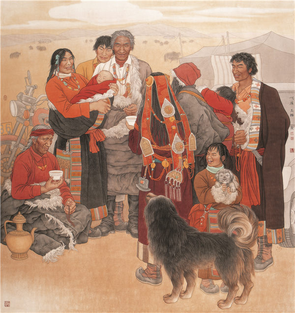 王天胜《扎西德勒》 纸本 232cmX222cm 王天胜