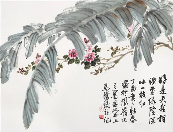 《丁酉花鸟草虫合册之一·蕉荫红薇》 马腾蛟 35x46cm 2017年