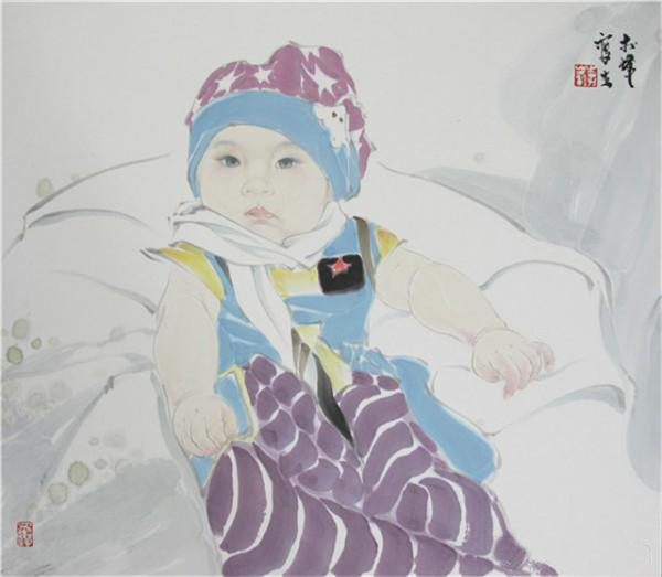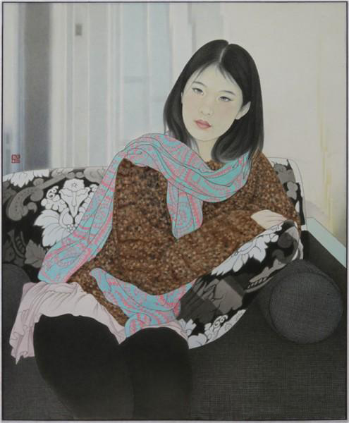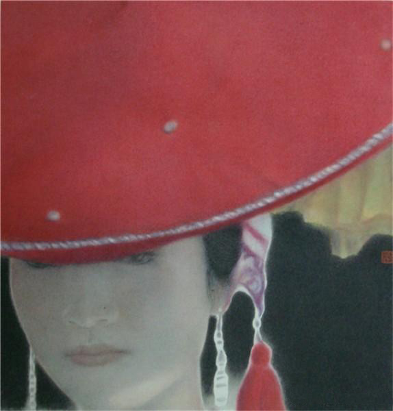 《戴帽子的少女》 李峰 42×40cm 2006年 纸本、工笔重彩