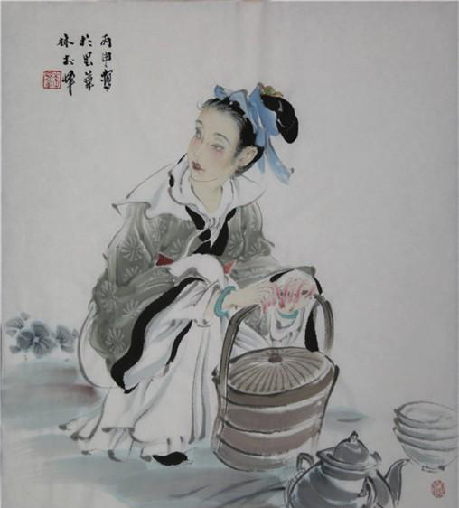 《伊人》 李峰 54×44cm 2015年 纸本、工笔重彩