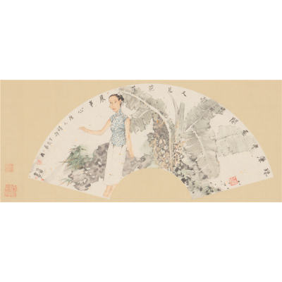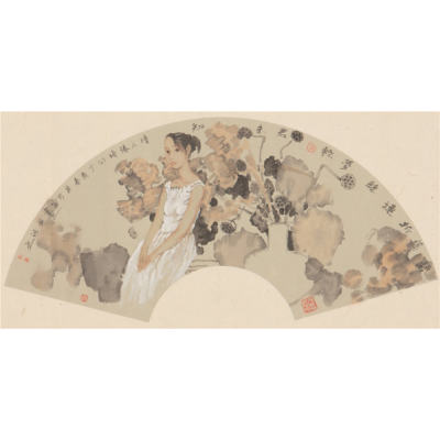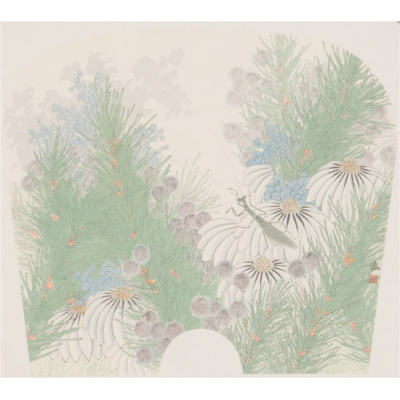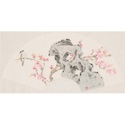 桃花小鸟扇面