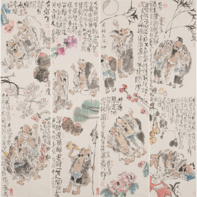 饮酒四条屏