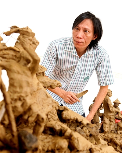 欧武,出生于1977年,籍贯广东吴川,广州美术学院三年。广东省非物质文化遗产泥塑传承人、广东省雕刻艺术研究会副会长、广东省民间文艺家协会《书画摄影委员会》副主任、广东省民间文艺家协会秘书长、广东省美术家协会会员、岭南美术出版社美术顾问、佛山市禅城区美术家协会会员、广东省工艺美术协会会员、广州市工艺美…