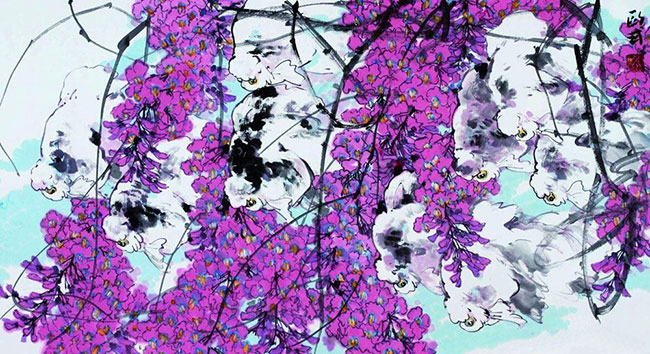 有人说欧武是个鬼才,他的国画用色浓烈大胆,激情如火柴划过宣纸,点燃自己,也点燃艺术;也有人说欧武是个狂徒,竟敢将三寸金鱼画满八平尺宣纸,把美丽的鱼画成妖娆、自由、狂野、奔放的卡门,笔墨线条充满了狂放、不羁和叛逆。