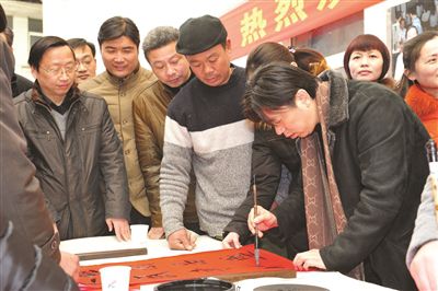 两个小时送出千余幅“福”字和春联
