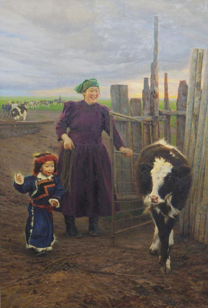龙力游《牧童的歌声》2012年创作,尺寸194*130cm