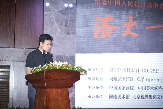 这次“浴火”画展,是中国人民抗日战争暨世界反法西斯战争胜利70周年一次重大的活动,本次展览选取了自1979年至今的108幅战争题材的作品,直面黑暗,直面战争,以恢弘的气势,大气的笔触,歌唱着中国人民在国家和民族遭到日本侵略者践踏和蹂躏的时所做出的伟大牺牲。每幅作品都承载着厚重的历史,满含着中华民族的伤痛耻辱与不屈不挠的精神,点亮了每一位中国人的良知与觉醒。特别是赵奇老师特意为本次南京展览创作的一幅十几平尺的大画《长歌·南京英魂》,以一种纪念碑式的画面纪念68年前的那场大规模屠杀和南京战士的浴血卫城,画面虽简洁,却蕴含着极为丰富的的内容,吸引了大量观众驻足围观。