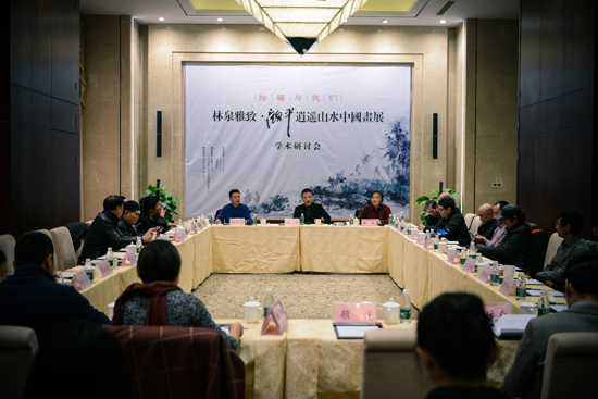 观展之后,马鸿增(中国美术家协会理论委员会副主任、著名美术理论家),左庄伟(南京师范大学、教授、著名美术评论家),樊波(南京艺术学院人文学院院长、博导),丁涛(南京艺术学院教授、著名美术理论家),商勇(南京艺术学院教授),李忠明(南京信息工程大学语言文化学院院长、博导),苏金城(上海大学美术学院副教授、博士后),许威(中央电视台著名编导)等纷纷出席参加由谢海(美术报总编辑助理、新闻评论部主任、著名美术评论家)主持的《绘画与我们--顾平逍遥山水中国画展(2015 南京)学术研讨会》,为本次画展开幕式画上一个完美的句号。