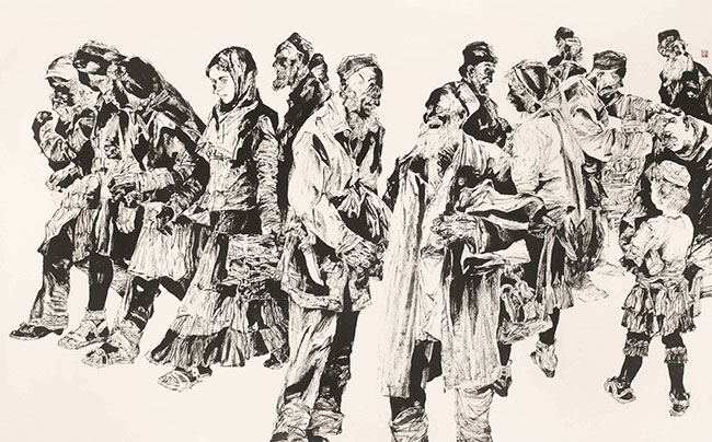 殷会利作品 祥光大巴扎(局部)--纸本焦墨--192x632cm--2010年