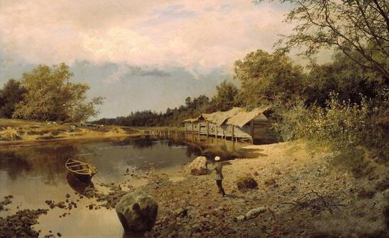 伏尔加河是欧洲最长的河流,被称为“俄罗斯的母亲河”,也是巡回画派画家的抒情对象和精神家园。萨符拉索夫的《霜降树林》,希施金的《傍晚》、《阳光下的松林》,波列诺夫的《阿布拉姆采沃的池塘》与列维坦的《春天——大水》等巡回画派的风景画经典呈现出俄罗斯大地的典型形象,让人看到跨越田野和林间道路的辽阔空间。俄罗斯的大自然化作色彩与光影的巨大花园,对故土与民族的热恋与感伤成为画家取之不竭的灵感源泉。这些作品让人真切地感受到美的震撼,仿佛聆听到伏尔加河上传来的动人协奏。