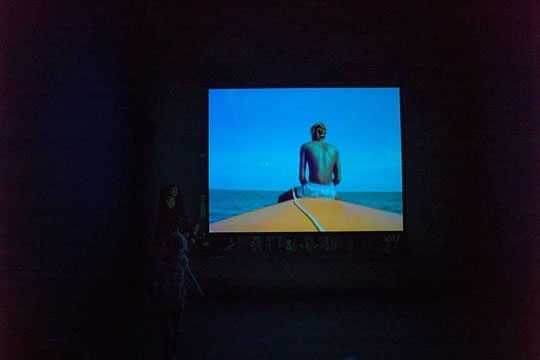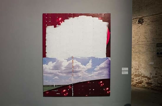 理解一幅绘画第一眼的直觉很重要,有时很难去深层发掘它的含义,正如美国艺术家格迪·诗布尼周六一个月(2015年)的这件。在一块回收的铝板表面用白色油漆涂了一大片,未覆盖部分是云和草的图像。这一切和作品名字有什么关联吗?这很难说,或许只有艺术家本人知道。我们看到的是难以言表的,对于作品好在哪里也不一定非要解释清楚,我们只需要静静的看着它。格迪·诗布尼自由、轻松的作品,对于双年展上既忙碌又劳心劳神的人们无疑可以起到舒缓的作用。