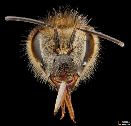 Droege花了不少时间,才制作出了上面那张图,蜜蜂(Apis mellifera)头部的细节清晰可见。
