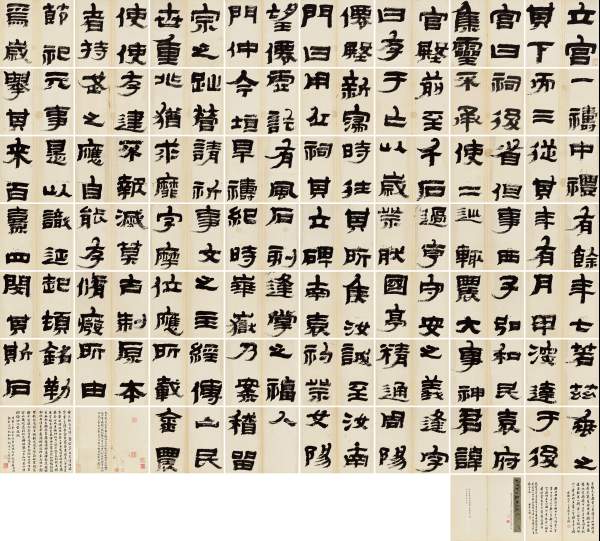 古代书法部分,王铎作为上一季书法部分的“拍王”,本场共推出5件作品,虽然有2件作品遭遇流拍,但其“行书诗文稿”册页以1748万元成交,紧跟个人拍卖纪录,另两件拍品“行书与傅伯济诗和“临王羲之《月半念足下帖》”也均在千万元左右高价成交,分别以1150万元和897万元成交额落入买家囊中。而作为本场的“拍王”金农,其“隶书《华山庙碑》册页”不仅夺得本场书法部分头筹,还以4025万元成交价打破个人世界拍卖纪录。