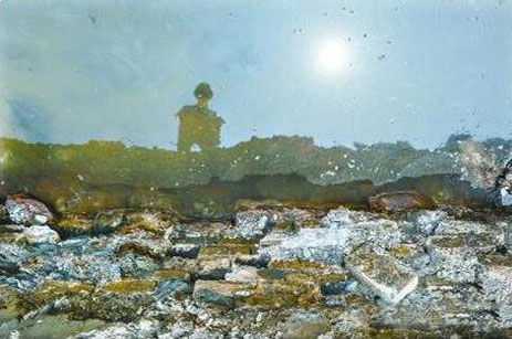 他又带记者来到刚挖开的一个地下水坑,只见2米深与地下水位持平处,红色石块露出了一排,上面还整齐地码着几排青砖。