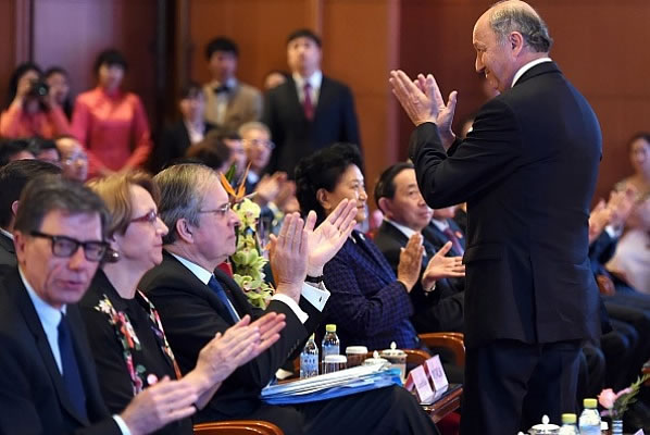 Serge Lasvignes (最左) 与法国外交事务和国际发展部长Laurent Fabius于5月15日,16日拜访了中国