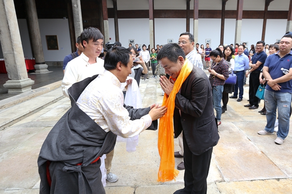 热贡艺术代表传承人 扎西当周大师向嘉宾敬献哈达