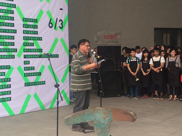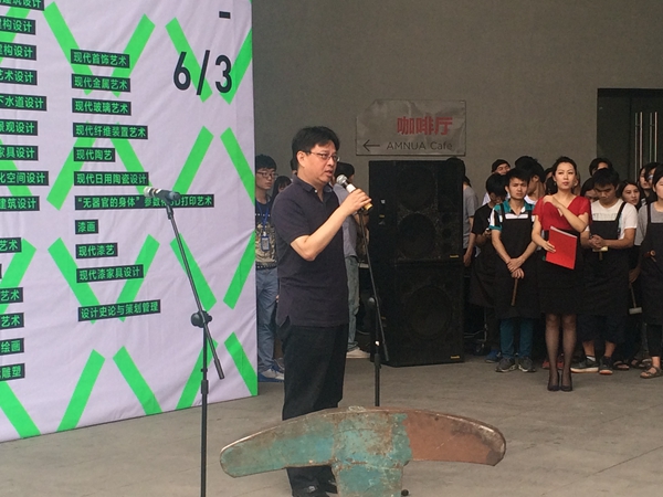 南京艺术学院设计学院院长邬烈炎在开幕式上讲道:“对于这次的毕业展我内心充满了感谢之情。习主席曾说过这么一句话‘时间都去哪儿了?’经过毕业设计这么长的时间我们也回答了这个问题。我们把时间和精力都投入到了毕业设计当中。我们以实验性的态度、以交叉性的方式来完成了我们的毕业设计,我们期待大家的批评。”