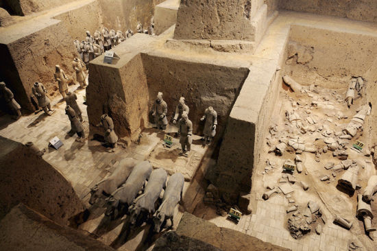 人们对秦陵兵马俑的印象一般来自一号坑里千军万马的景象。有“秦俑之父”之称的兵马俑博物馆(2009年改为秦始皇帝陵博物院)第一任馆长袁仲一先生对二号坑却情有独钟,尽管它现阶段的面貌总在一号坑光芒的遮蔽之下:“你可以看到富有诗意的高低起伏如波浪一样的棚木遗迹,丹麦女王玛格丽特二世来参观的时候盛赞它是历史的画卷!”