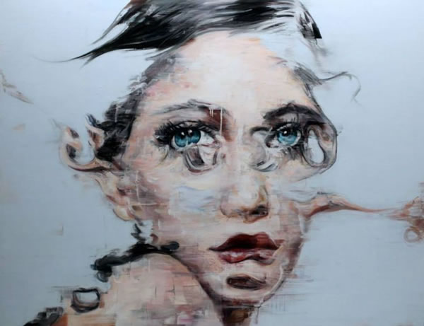 哈丁•迈耶作品“O.T.”(局部),布面油画,170×220cm,2014,图片由Voss画廊提供