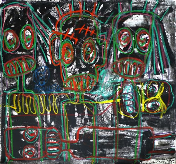Aboudi作品无题街小孩,布面综合材料,48×48英尺,2015,图片由纽约伊桑•科恩提供