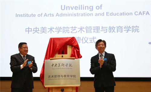 范迪安院长与余丁教授共同为中央美术学院艺术管理与教育学院揭牌