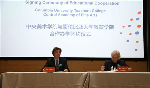 随后,还举行了中央美术学院和哥伦比亚大学教育学院合作办学签约仪式,范迪安院长与哥伦比亚大学朱迪斯·伯顿教授代表双方学院进行了签约,标志着中央美术学院与哥伦比亚大学教育学院友好合作,共同推进美术教育发展的新纪元。