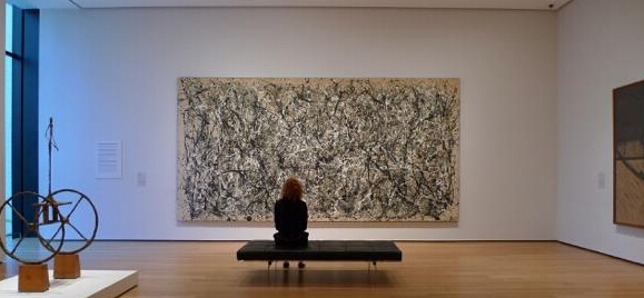MoMA内一位参观者坐在波洛克的作品前,图片来自MoMA官网