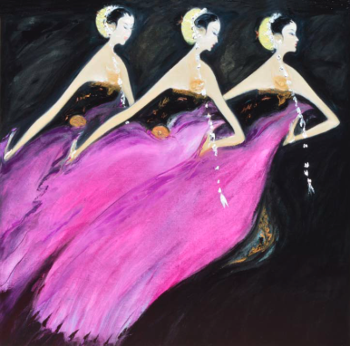 斯里哈迪·苏达索诺被视为印度尼西亚绘画大师之一,他精湛的使用色彩和热情来表达经典的印度尼西亚传统。出生于贵族世家的苏达索诺对瓜哇宫中的习俗并不陌生。位于梭罗的皇家宫殿每年都会演出神圣的祭祀舞蹈,名为Bedaya Ketawang。苏达索诺有幸目睹这个仪式,并在绘画中准确地捕捉优美的舞蹈韵律,突显出每一位舞者的优雅和风度。