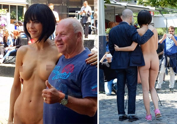 继2014年科隆博览会期间在主展馆前广场以阴道创作画作、赤身裸体参观2014年巴塞尔艺博会展会以及2015年2月末赤身裸体、怀抱婴儿在LWL文化艺术博物馆逛艺术展之后,这位拥有着天使般脸蛋魔鬼般身材的行为艺术家近日在2015年度巴塞尔艺博会期间再度“出击”——现身巴塞尔历史博物馆前的“赤脚广场”(Barefoot Square)盛情邀请现场的游客一起玩起了自拍!
