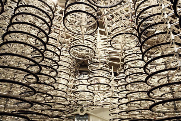 在意象无限展馆,你一定不能错过著名先锋艺术家艾未未的作品“重叠的自行车”—— 由760辆永久牌自行车叠加起来的金属世界,车架和轮胎交错纵横,极具中国制造业大批量生产的象征意义。