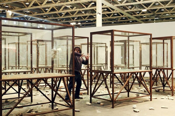 另一件少一分趣味多一分醒目的作品是来自法国-阿尔及利亚艺术家Kader Attia的大型装置作品“阿拉伯之春”。作品通过打碎玻璃外架的陈列框,并保留碎片的一系列触发装置而再现2011年初埃及开罗博物馆遭到破坏的场景,从而引发观者的思考。