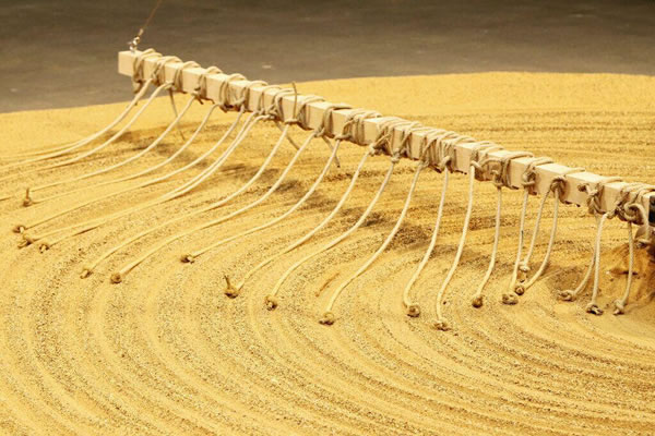 除“阿拉伯之春”之外,还有另两件作品也旨在反映“变革”这一话题,不同的是以更加直观的方式展现了其主旨:艺术家Julius von Bismarck的“利己主义的思维”展现了该艺术家在一个不停旋转的平台上进行活动的画面 —— 时而阅读,时而平躺;Günther Uecker的“磨砂机”则展示了一个电子磨砂机在沙堆里打转的画面——是否也带有些许变革阶段周而复始的意味呢?