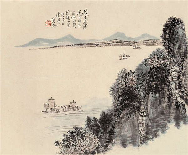 前惠册页,不独笔墨简炼,画意高古,千里江山,收诸寸纸,抑且设色妍丽(在先生风格中,此点亦属罕见),态愈老而愈媚,岚光波影中,复有昼晦阴晴之幻变存乎其间,或则拂晓横江,水香袭人,天色大明,而红日犹未高悬;或则薄暮登临,晚霞残照,反映于蔓藤衰草之间;或则骤雨初歇,阴云未敛,苍翠欲滴,衣袂犹湿;变化万端,目眩神迷。写生耶?创作耶?盖不可分矣。