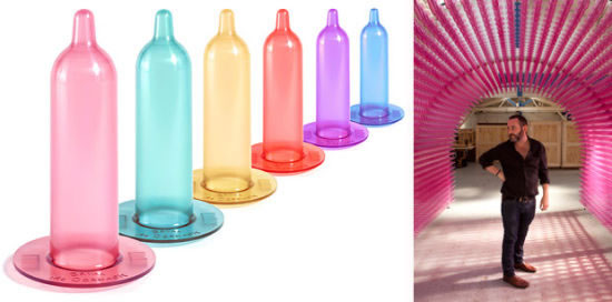 近日,一幅用17000个安全套做成的本笃十六世肖像日前在密尔沃基艺术博物馆展出,遭受到了来自各界褒贬不一的评价。而以安全套为材料组成作品的事件早已有之,在艺术家的手下安全套以各种各样的形式出现在大众视野,如性感的服装、浪漫的灯光装置等,在这里,色彩缤纷的安全套让你眼花缭乱。