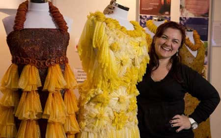 这个系列被称为“安全套时装”,她将过期或不合格的避孕套染色并做成连衣裙,使之转化成一种功能性艺术,以此激励社会变革,倡导安全性行为,预防艾滋病。“避孕套必须成为一种基本需求。我希望我的艺术能推广到世界各地,提醒人们安全措施对于性行为的必要性。”阿德里亚娜说道。