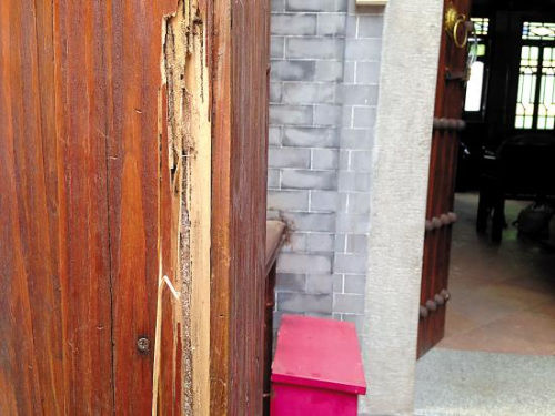八和会馆四年前开始遭到白蚁侵蚀,当时屋顶横梁破损,东墙渗水。尽管后来大修了一次,但砖木结构的老房子依旧病根难除。去年,再次出现屋顶被蛀、墙壁渗水的情况。八和会馆请白蚁防治公司前来消杀,但被白蚁蛀空的地方非常多,如果不及时修缮,老屋随时有坍塌的危险。