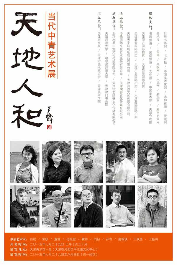 此次“天地人和”当代中青年艺术展,汇集了十位当代中青年艺术家作品,他们有一个共同的特点就是都在用他们的艺术创作,努力践行“天地人和”的宇宙生存观念,他们将天人合一的理念融入到艺术生命的整个过程,将“道法自然”的方法论融入到艺术探索的整个过程;他们不断地改变着传统,不断地改变着自己;他们是最富有创造力的一批人,也是最富有艺术激情的一批人;他们此次展出的作品视野开阔、意境深远,表达了天地人和的大美境界,同时也表达了他们在对宇宙象变过程中的艺术探索,充分展现了他们以天地大美为灵魂的艺术理想。他们中大多毕业于国内优秀的艺术院校,有的则就业于专业美术创作单位,有的直接留在高校从事美术教育工作,借此展览齐聚天津美术馆,展现他们近年来潜心追求的精品力作,正是“天地人和”精神的集中体现,展览以此为题,旨在倡导一种追求自然和谐美好的艺术精神和价值取向。