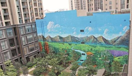 壁画和小区绿化融为一体