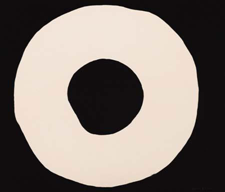 作为具体派一员,吉原治良在上世纪60年代中期创造出一个历久不衰的符号——圆,成为他在战后抽象艺坛的重要成就。该系列创作中,吉原治良在红色、白色或黑色的单色背景上,画上富有书法效果的大圆圈——其灵感来自禅意书法,同时令人联想到西方的几何抽象艺术,以及美国艺术家波洛克的行动绘画。