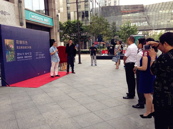2014年9月10日“荷塘悦色”袁运甫水墨版画艺术展在颐和悦馆·莱维艺术空间圆满开幕,81岁高龄的袁运甫先生亲临展览现场参加开幕仪式。