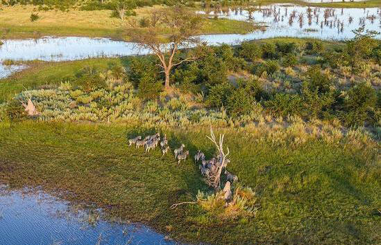 近日,摄影师Peter Adams乘坐直升机来到世界上最大的内陆三角洲奥卡万戈,并从3000英尺高空拍摄了地面上眩晕的水牛群、水中乘凉的河马等等令人惊叹的景象,56岁的Peter认为这是一个独一不二的绝妙角度。