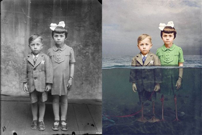 澳大利亚艺术家简·珑(Jane-Long)以这组历史照片为基础,采用数字化工具创作了这组名为《与柯斯提卡共舞(Dancing-WithCostic)》的系列作品。