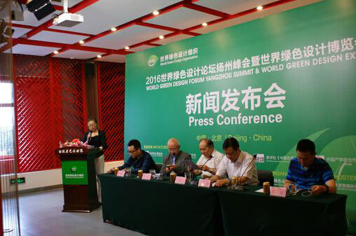 9月9日,“2016世界绿色设计论坛扬州峰会暨世界绿色设计博览会”新闻发布会在北京举行。国务院参事、中国科学院可持续发展战略研究组组长、首席科学家、绿色设计研究院院长牛文元、中国循环经济协会木塑复合材料专业委员会秘书长刘嘉、北京光华设计发展基金会理事长张琦、扬州市广陵区投资促进局局长纪建、世界绿色设计论坛扬州峰会秘书处负责人等出席了新闻发布会。