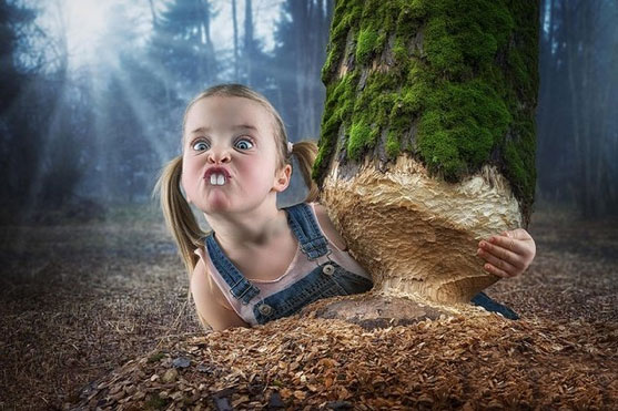 相信大家这会儿已经心里有底了。不过光是让动物起飞,还不足以凸显他的特色,上面说到他有3个娃娃,对摄影师来说都是绝佳的模特呀!于是,宝宝们就被爸爸“玩儿坏了”。Wilhelm让孩子们各种变装、搞怪、表演特技、智斗大猛兽……当然这些都是照片最终呈现出来的效果。