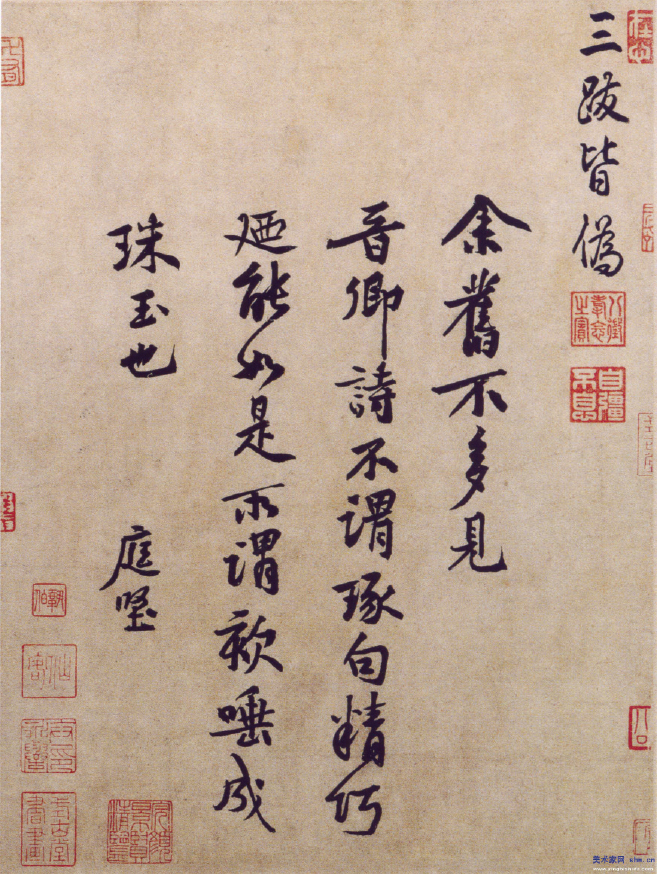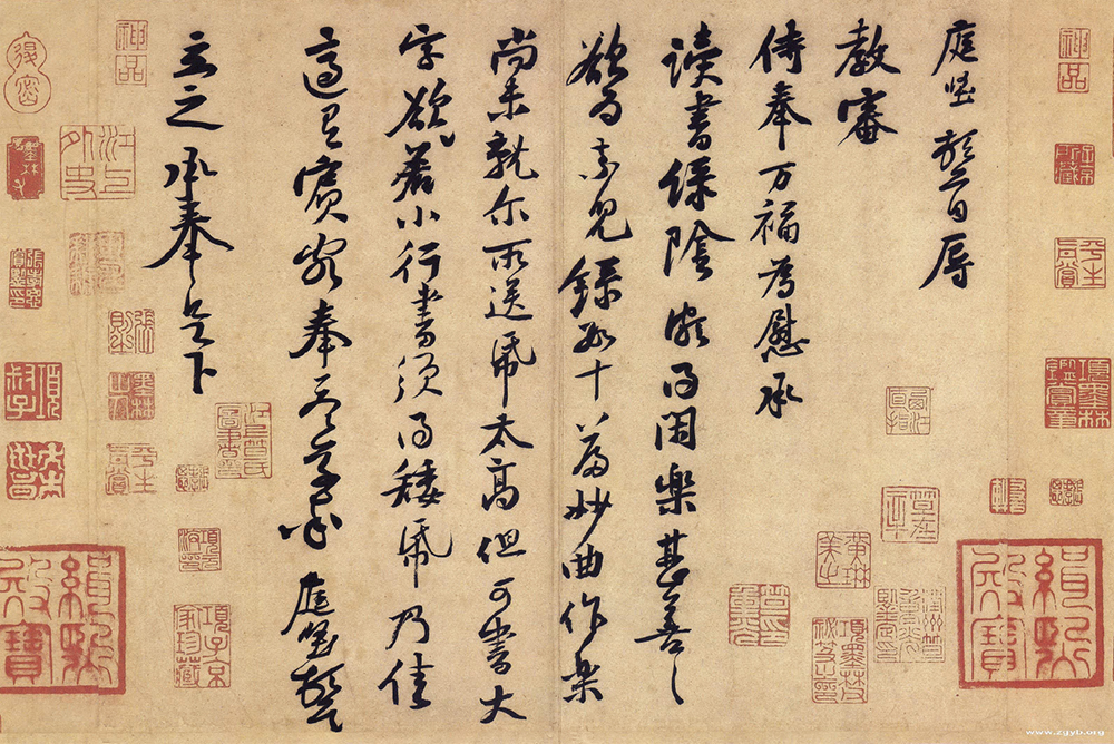家的看法,这样才有可能长进快。苏、黄二人在辈分上有长幼之别,黄为苏门四学士之一,年龄上相差8岁,这种亦师亦友之间的坦诚戏谑,不但没有遭到后人的诟病,反而成了千古美谈,苏、黄胸襟之坦荡、待人之真诚与大家之风范,是很值得我们这些书法人深思的。