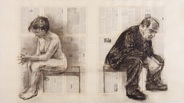 表面上《影子队列》会让人想起蒋兆和的《流民图》,应该可以拿在一起表述,但是我更愿意从他后来的这些笔记本式的书写里面去体验一种,比如说我们想到中国无能画家怎么样处理灾难,我们会想到的是徐渭的非常狂放的书法,有时候我们说是很悲痛书写,我们会想到非常怪异鸟的形状,我在威廉的画中反复看到怪鸟,徐渭式的狂放的笔法,这是经过了内在的熬炼。他们是无力的,他们被检录社会历史的痛楚里,但是最终在写作当中会去审判,去完成拯救,并且回收那些不断被压抑的东西,就是把一些东西重新翻出来,然后把一些东西抹掉,这样一种工作的方式对于我来说是非常熟悉的,或者说是我从小就被训练的一种精神状态和写作状态,我想这也是像我一样非常多的中国艺术家这么狂热喜欢威廉非常内在的心理机制了。
