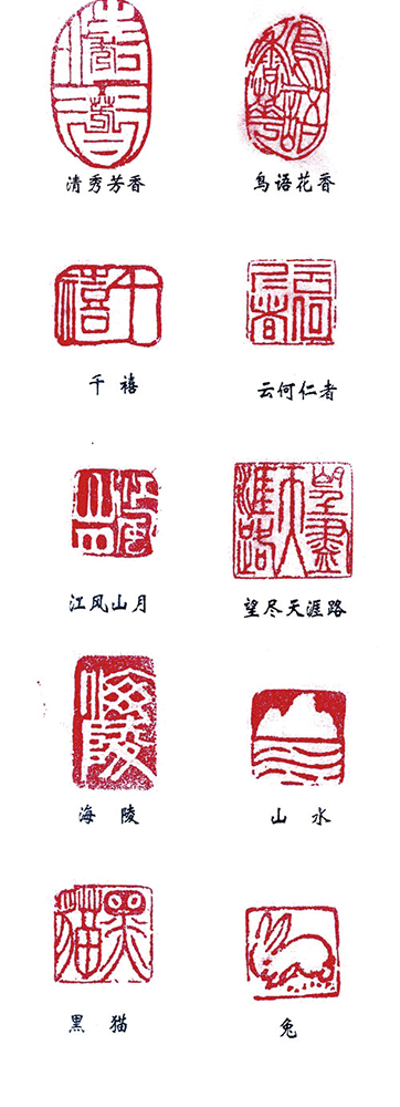 (二)闲章 亦称布局章,包括引首章、拦边章、压角章和腰章。
