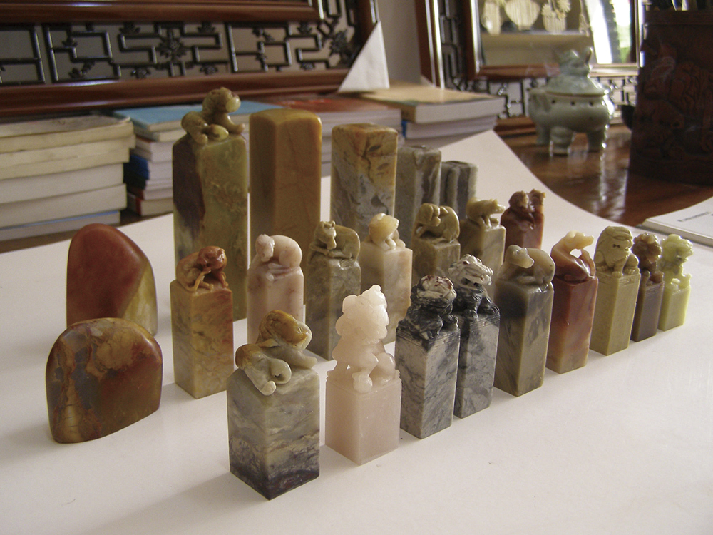 印章的材料有多种,常用的价格又能接受的有寿山、青田等普通石料。高档也有鸡血、田黄等等。溧阳周城芦荡有一种叶腊石,就是一种刻印材料,称溧阳石的。如有机会,可找些来试试。