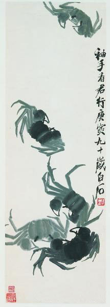 北平时期,另一件与螃蟹有关的著名公案却与美味无关。事情的主角是国画大师齐白石。抗日战争时期他闭门谢客,拒绝日本特务要他加入日本国籍、日本的利诱,多次拒绝为日寇作画。然而日本人不断加压,最后他无奈之下提笔画下4只螃蟹,然后落款“看你横行到几时”的字样。日本人看后气得直嚷“齐白石太顽固”。他大义凛然地说:“齐璜中国人也,不去日本。你硬要齐璜,可以把齐璜的头拿去。”